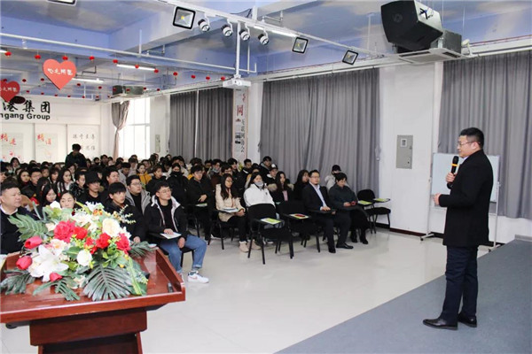 乾港集團(tuán)美博士環(huán)??偨?jīng)理常凱???,為在座的師生們解讀了大綠色環(huán)保家居、室內(nèi)污染物治理技術(shù)、方式方法及產(chǎn)品介紹等相關(guān)空凈治理知識;秦皇島新型材料科技有限公司總經(jīng)理李勇劍李總則為在座師生帶來了綠色材料研發(fā)及生產(chǎn)使用工藝等內(nèi)墻環(huán)保壁材方面的知識。