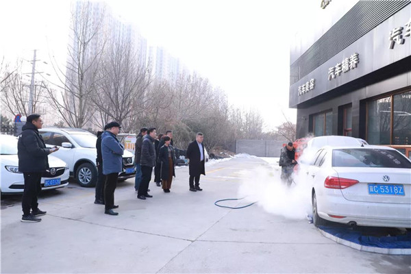 此次一行,多位領(lǐng)導(dǎo)主要對(duì)于我司的環(huán)保工作進(jìn)行考察與指導(dǎo)并與集團(tuán)領(lǐng)導(dǎo)進(jìn)行深度座談。首先,各位領(lǐng)導(dǎo)最先前往了環(huán)美亞汽車精養(yǎng)館參觀了蒸汽洗車演示,并在展廳內(nèi)參觀了逸掌幫蒸汽洗車機(jī)的幾款車型,由河北逸掌幫商務(wù)服務(wù)有限責(zé)任公司總經(jīng)理趙博涵趙總對(duì)車型進(jìn)行講解。